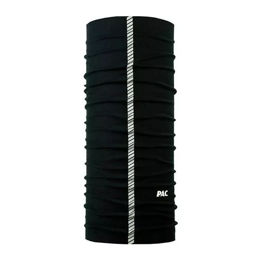 Dieses P.A.C.-Multifunktionstuch dient nicht nur als KÀlteschutz im Winter, sonder auch als Sonnenschutz im Sommer. Es gibt mehrere Varianten es zu tragen. Der Reflektorstreifen bietet zusÀtzliche Sichtbarkeit.