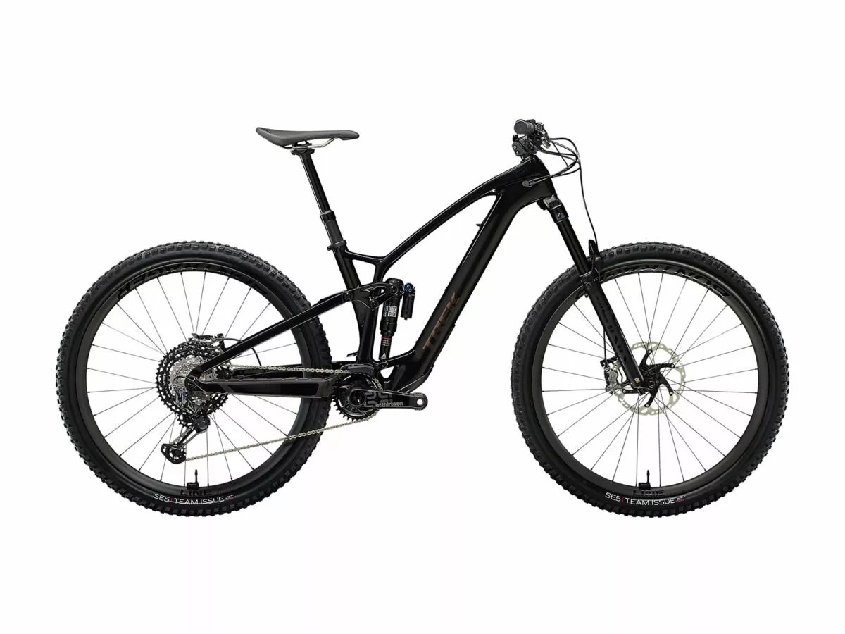 Rahmen OCLV Mountain Carbon, herausnehmbarer Akku, interne Zugführung, Umlenkhebel aus Aluminium, Sitzrohrdurchmesser 34,9 mm, Aufnahme für obere Kettenführung, 55 mm Kettenlinie, Mino Link, ABP, Boost148, UDH, 140 mm Federweg